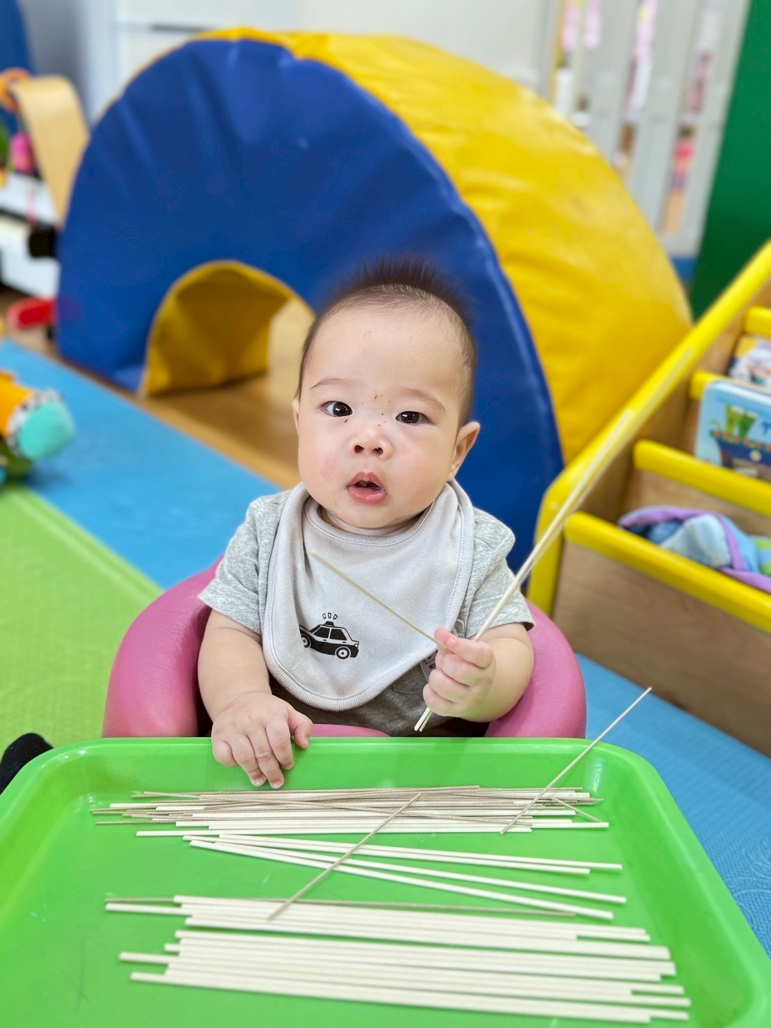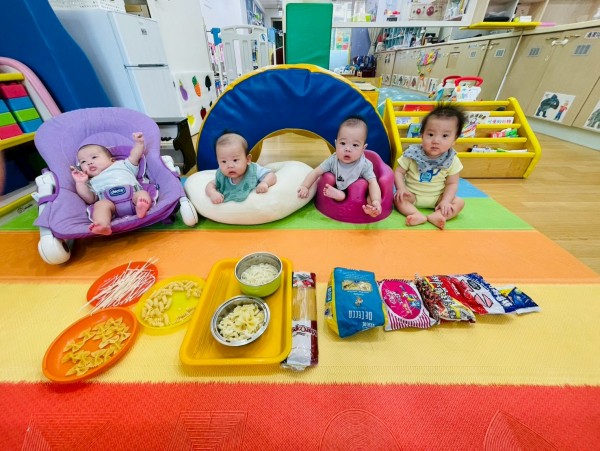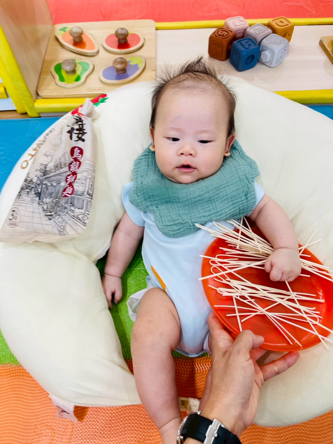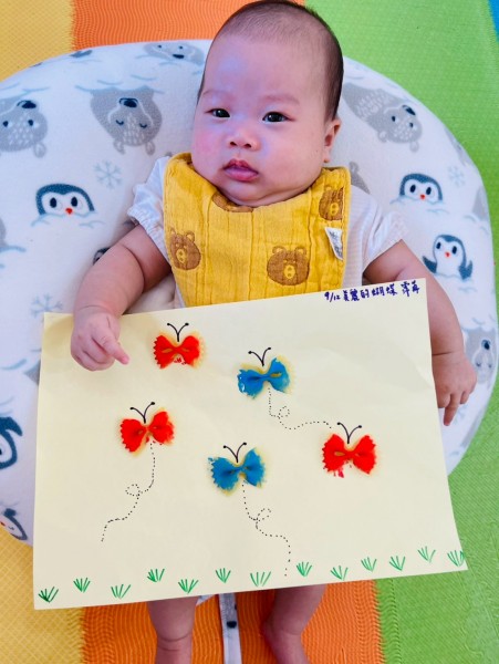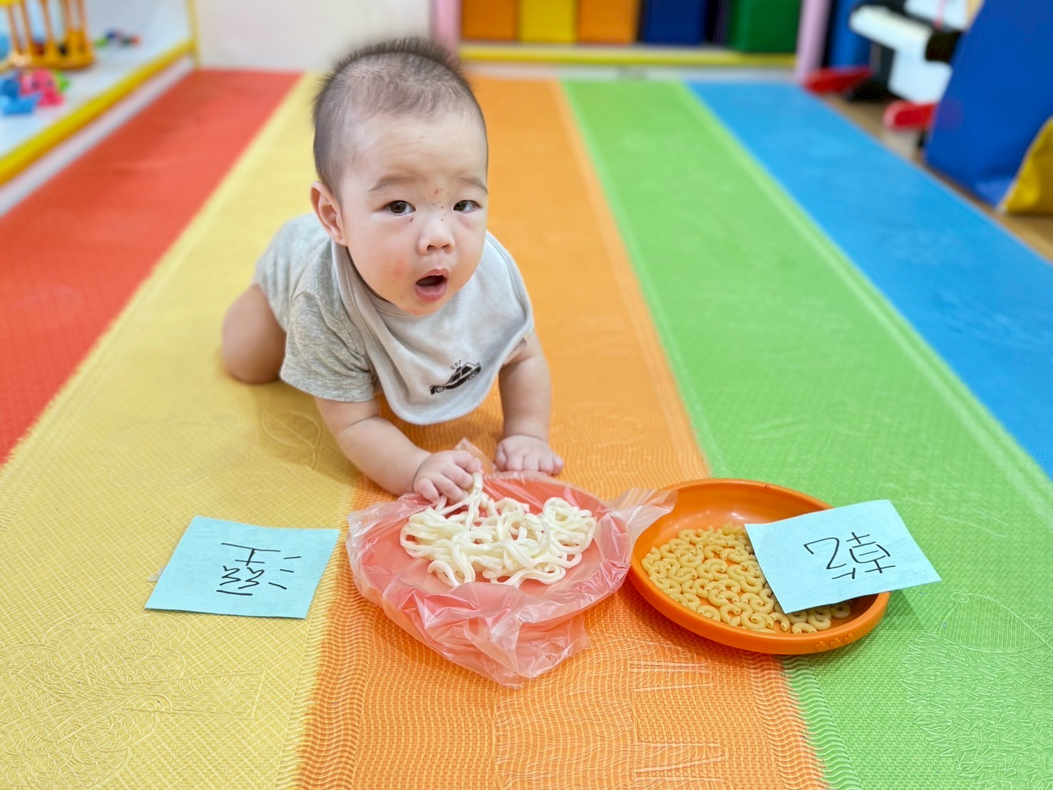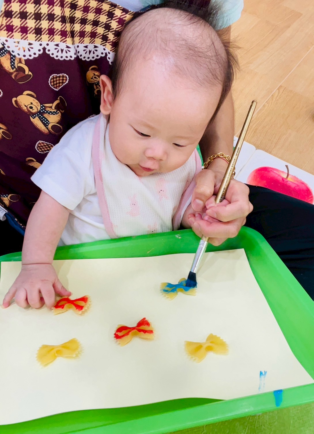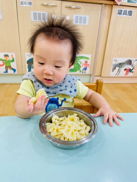 這週主題"各式各樣的麵",利用義大利麵、烏龍麵、陽春麵、泡麵....等食材,讓寶寶們實際觸覺體驗去感受不同麵的長短、粗細、乾濕,以及搖一搖感官瓶聽聽聲音的大小。再藉由蝴蝶形狀義大利麵,讓寶寶們親手著上繽紛的顏色,像是春天最美的風景!