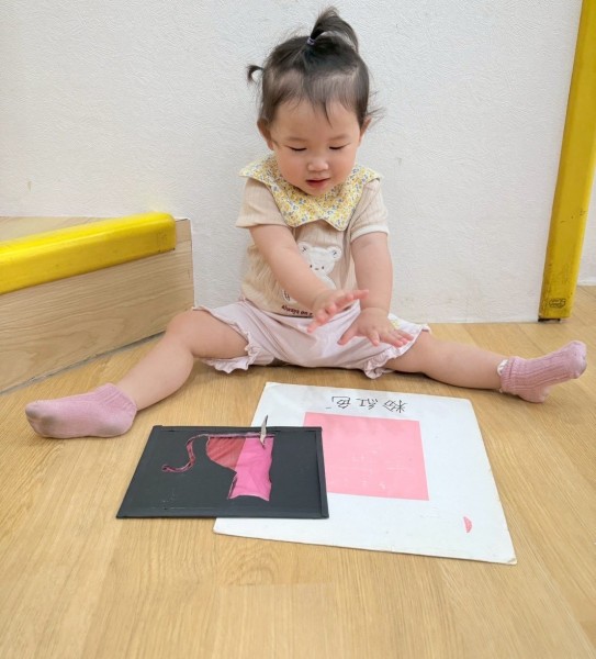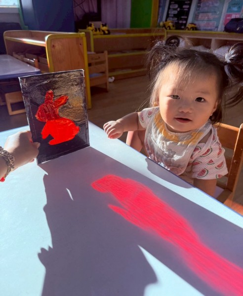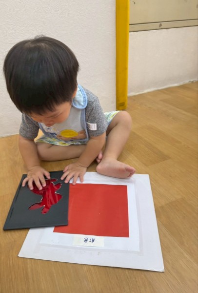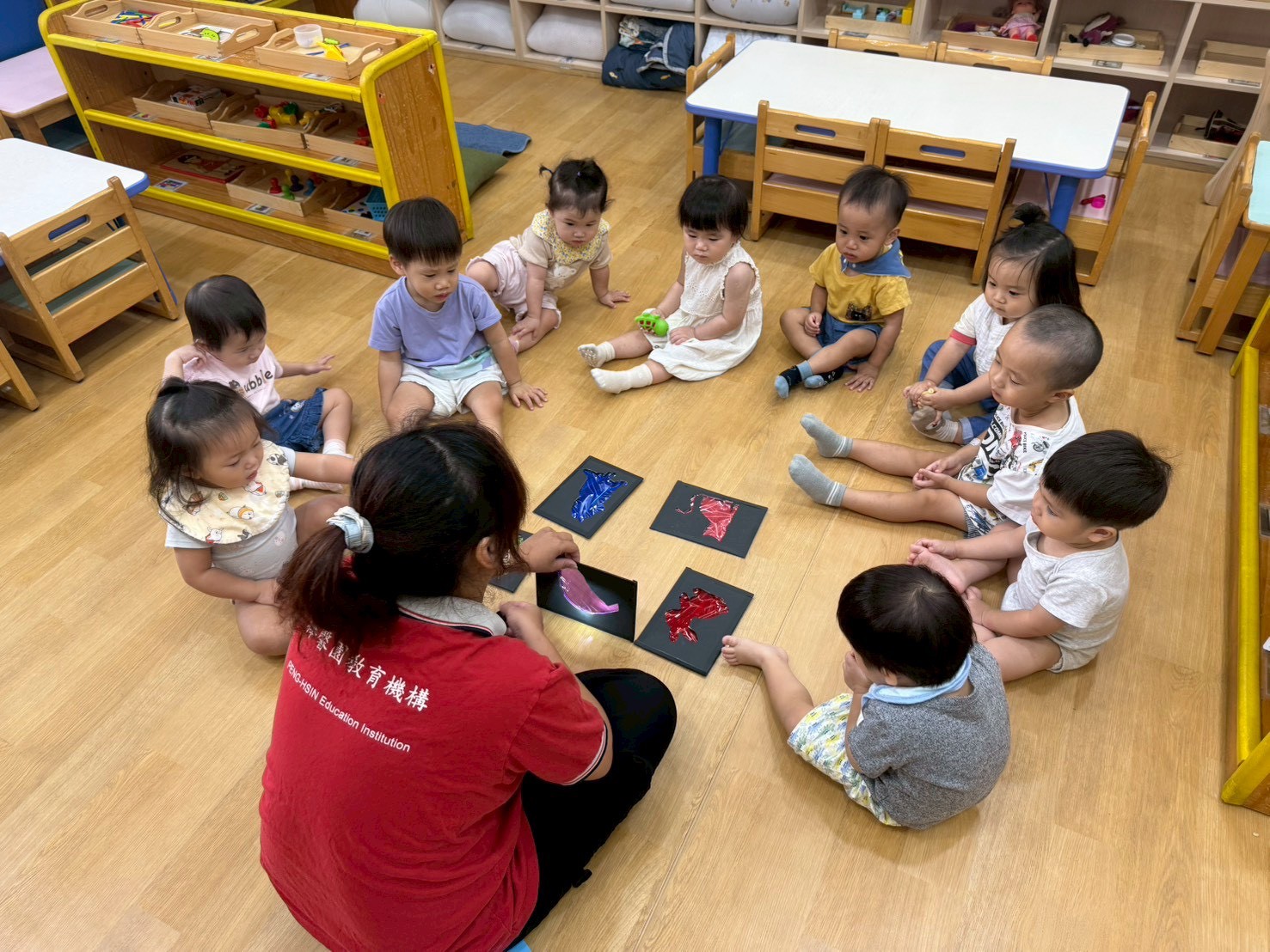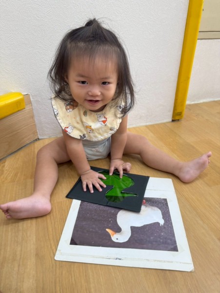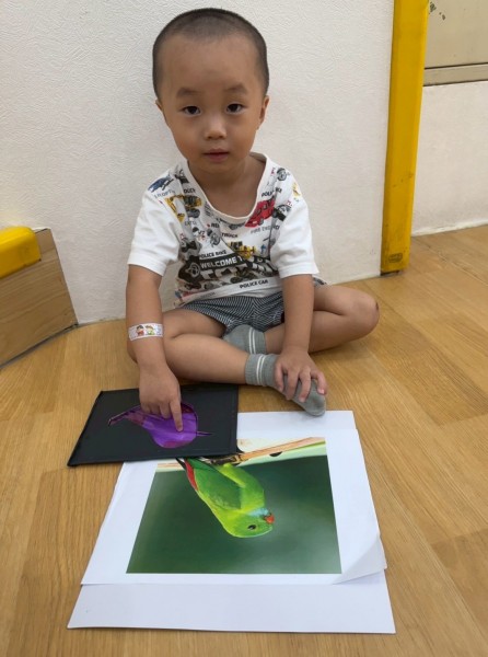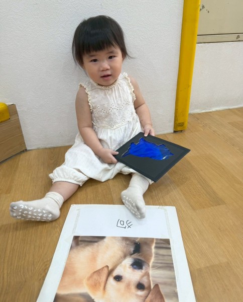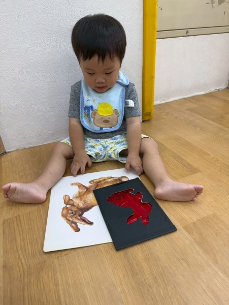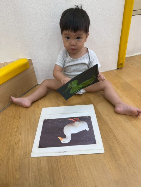 老師準備了不同顏色的動物圖片讓寶貝們看,