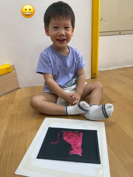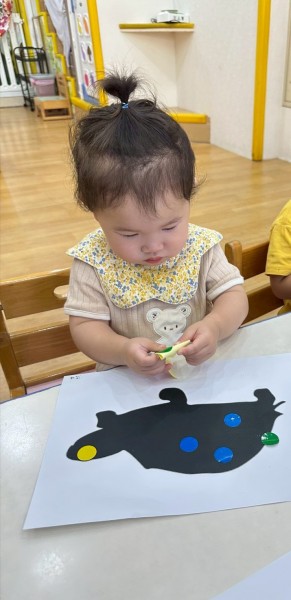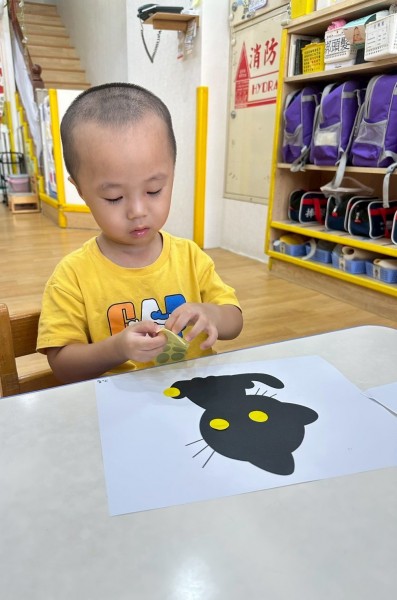 讓寶貝們把點點貼撕下來貼在影子上面。