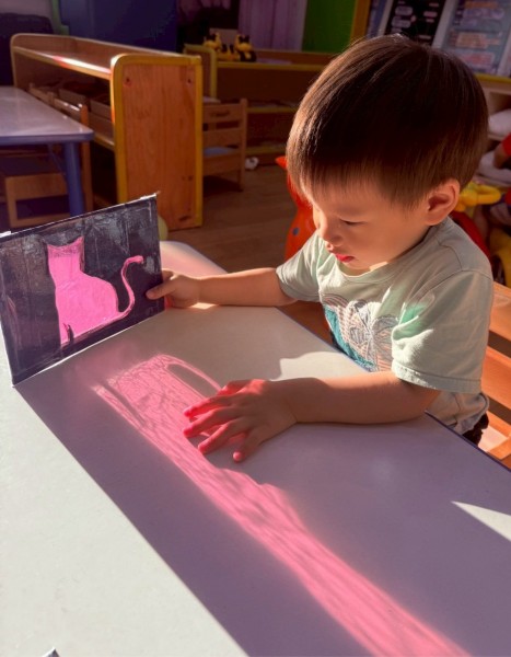 藉由陽光照射玻璃紙照出動物的影子,