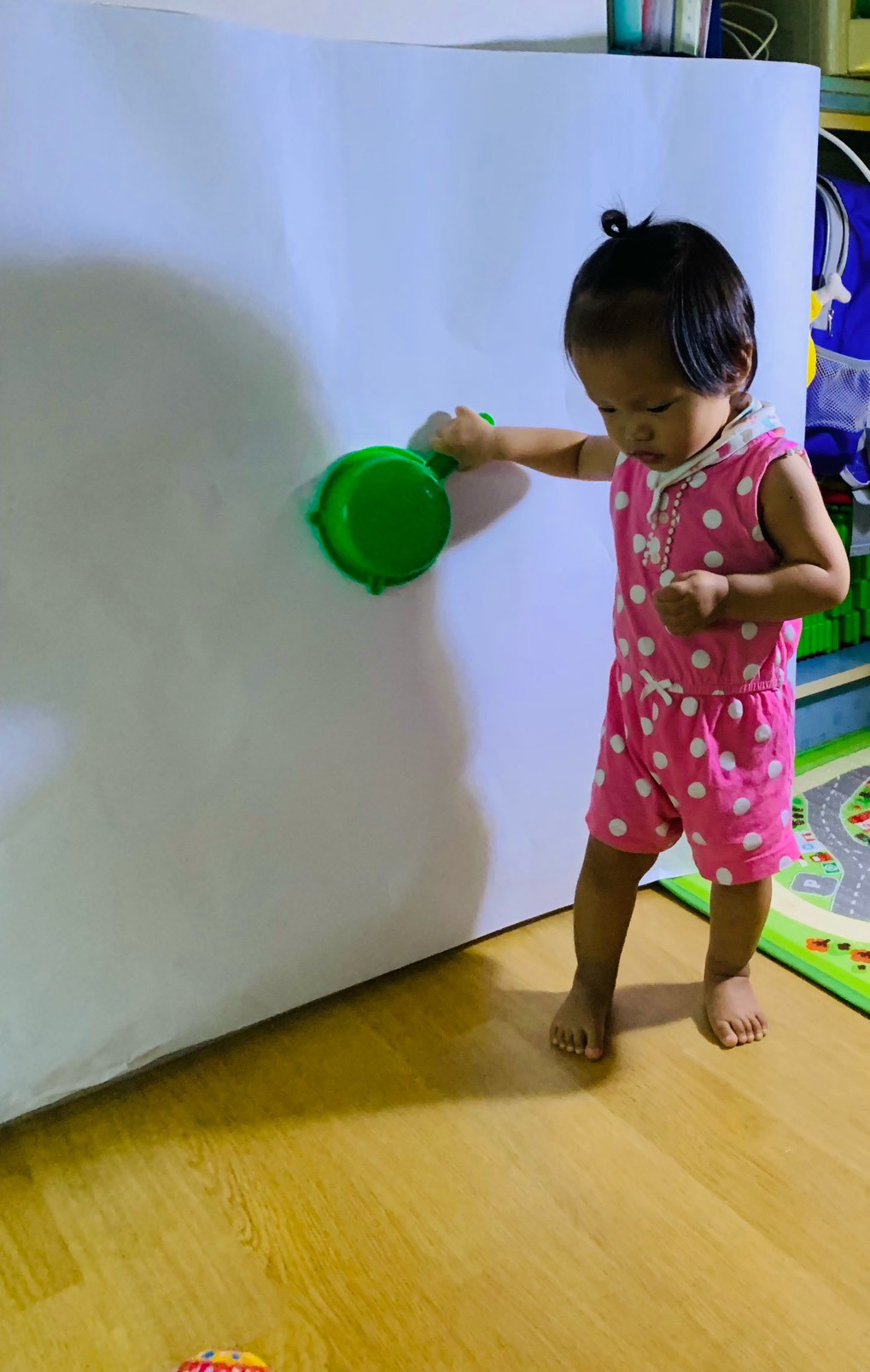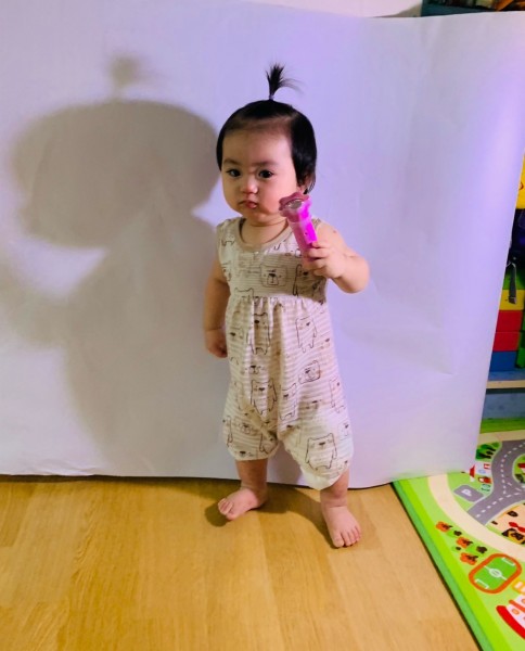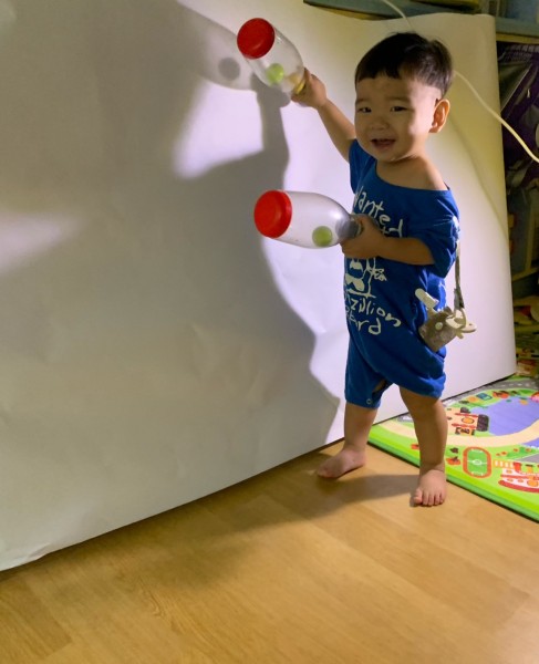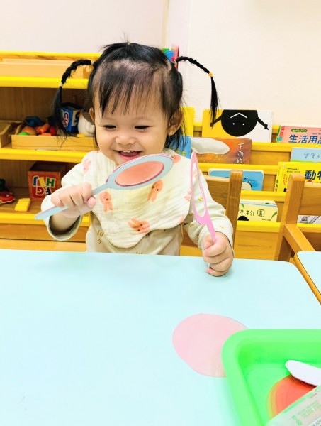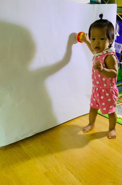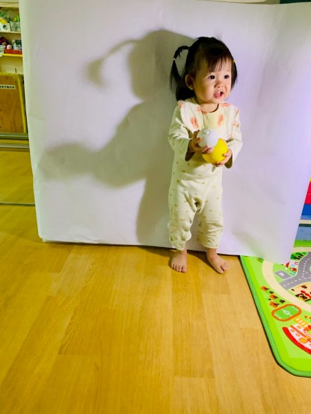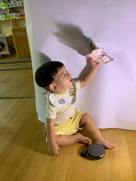 讓孩子們透過燈光與影子的奇妙變化,發現生活周遭中的小驚喜,一個燈會照出1個影子,二個燈會照出2個影子,把五顏六色的玻璃紙貼在紙卡上,從手電筒下的投影遊戲,每一個光影的變化都激發他們的好奇心,給孩子們在歡笑與探索中感受光的變化。