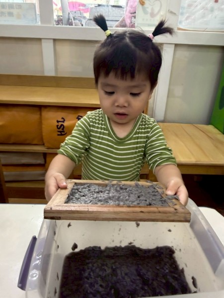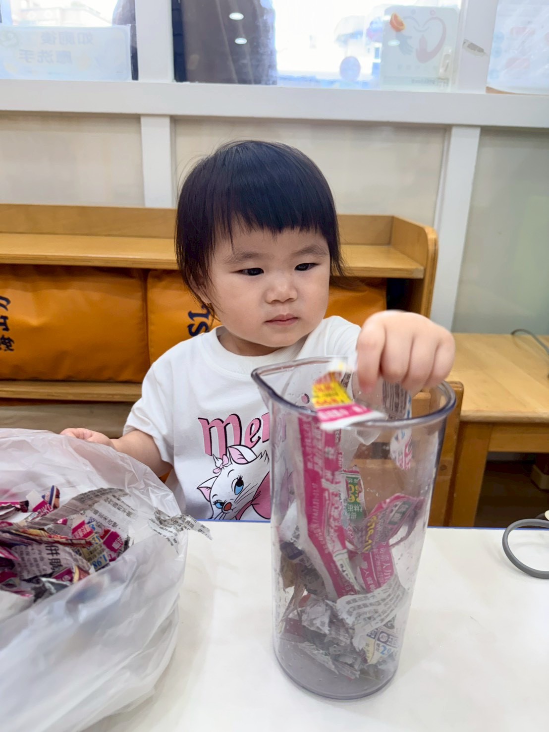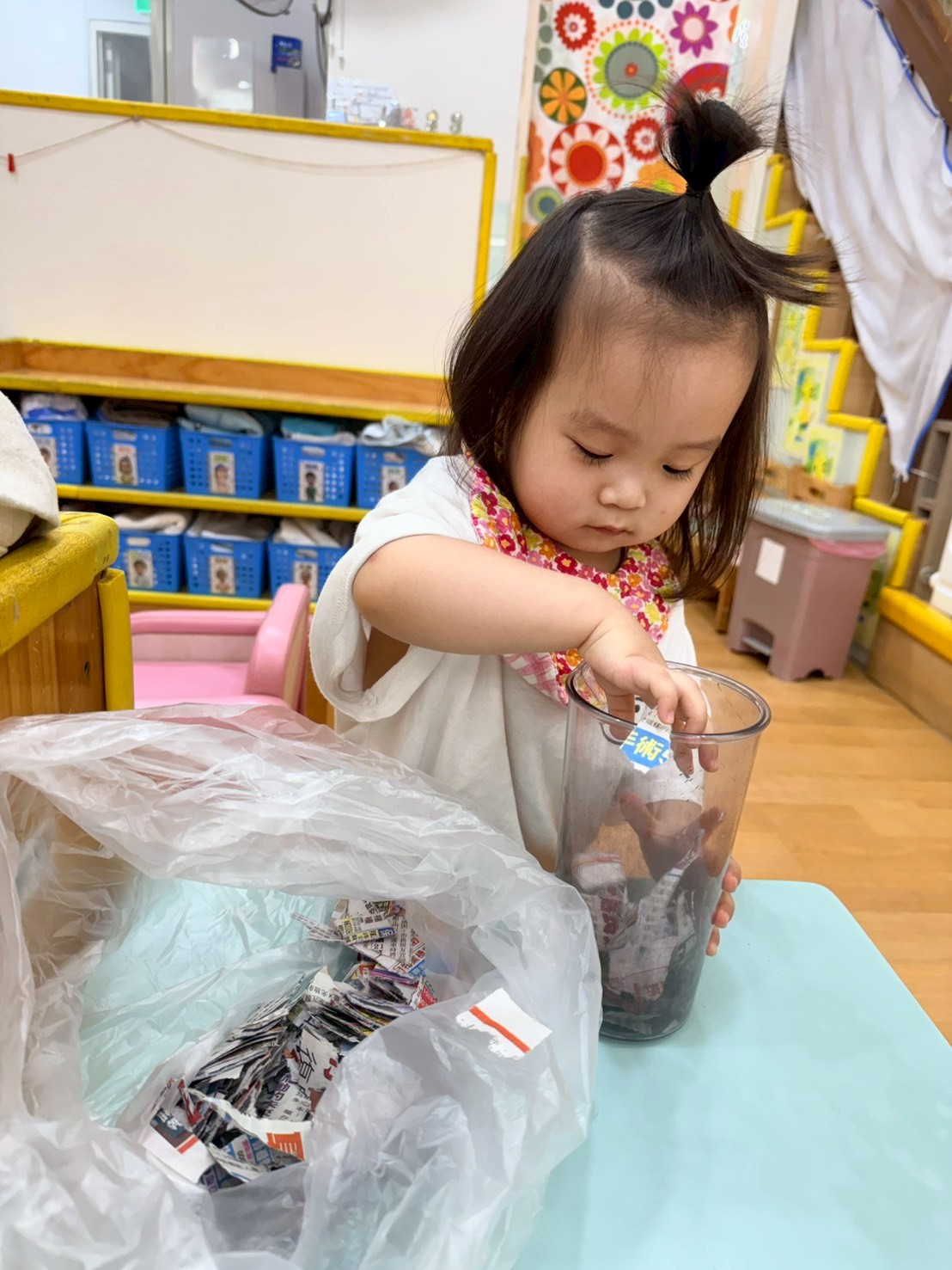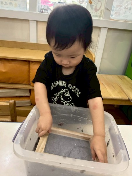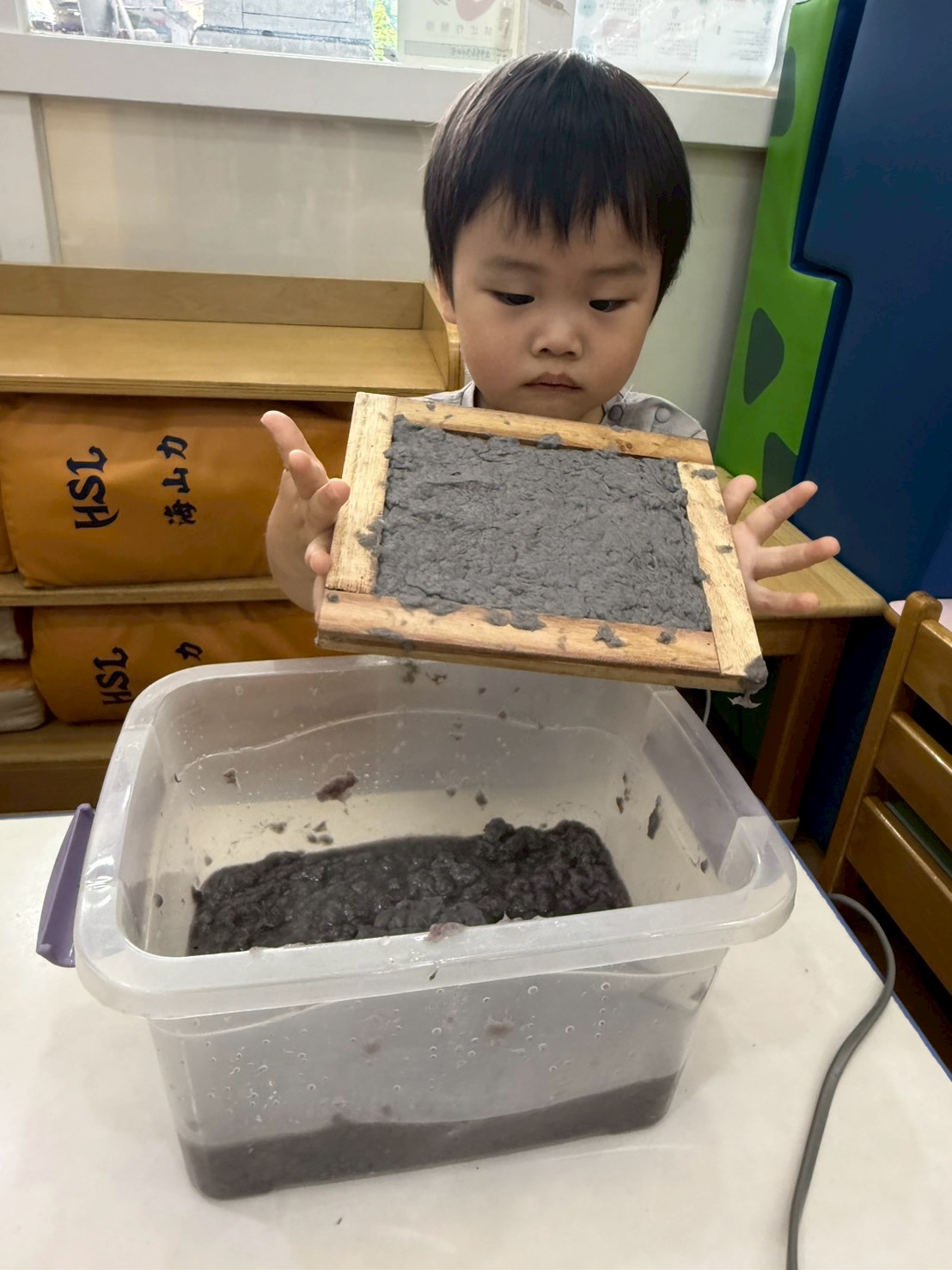 老師準備了報紙、料理機、紗網,讓寶貝們動動手製作再生紙