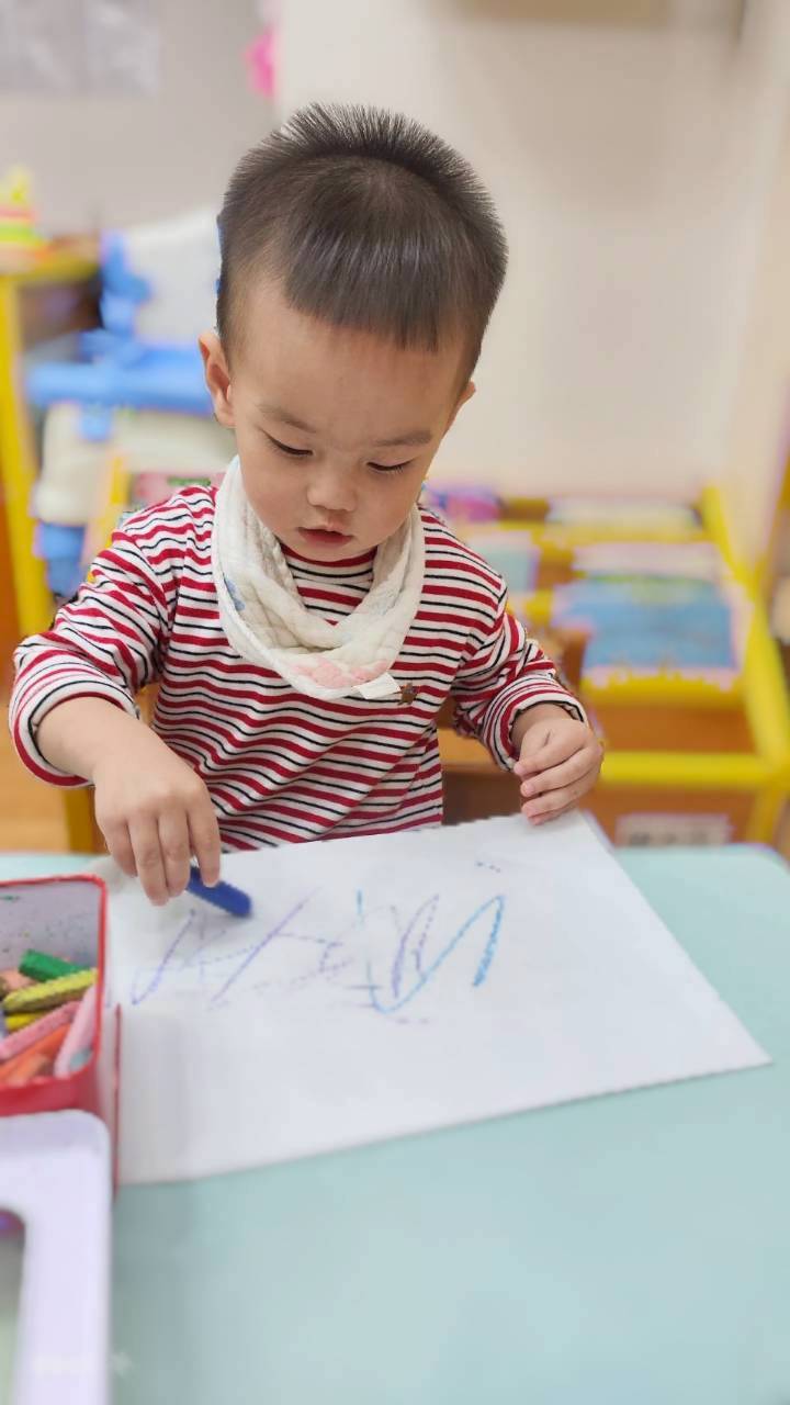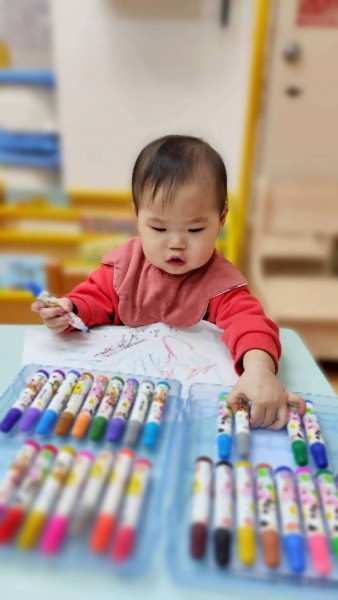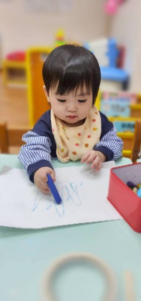 開始累積握筆和施力畫出顏色的經驗很重要哦!