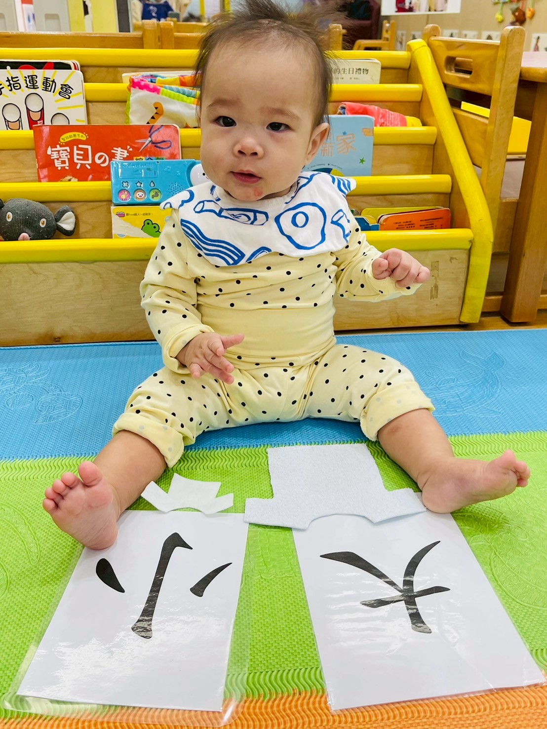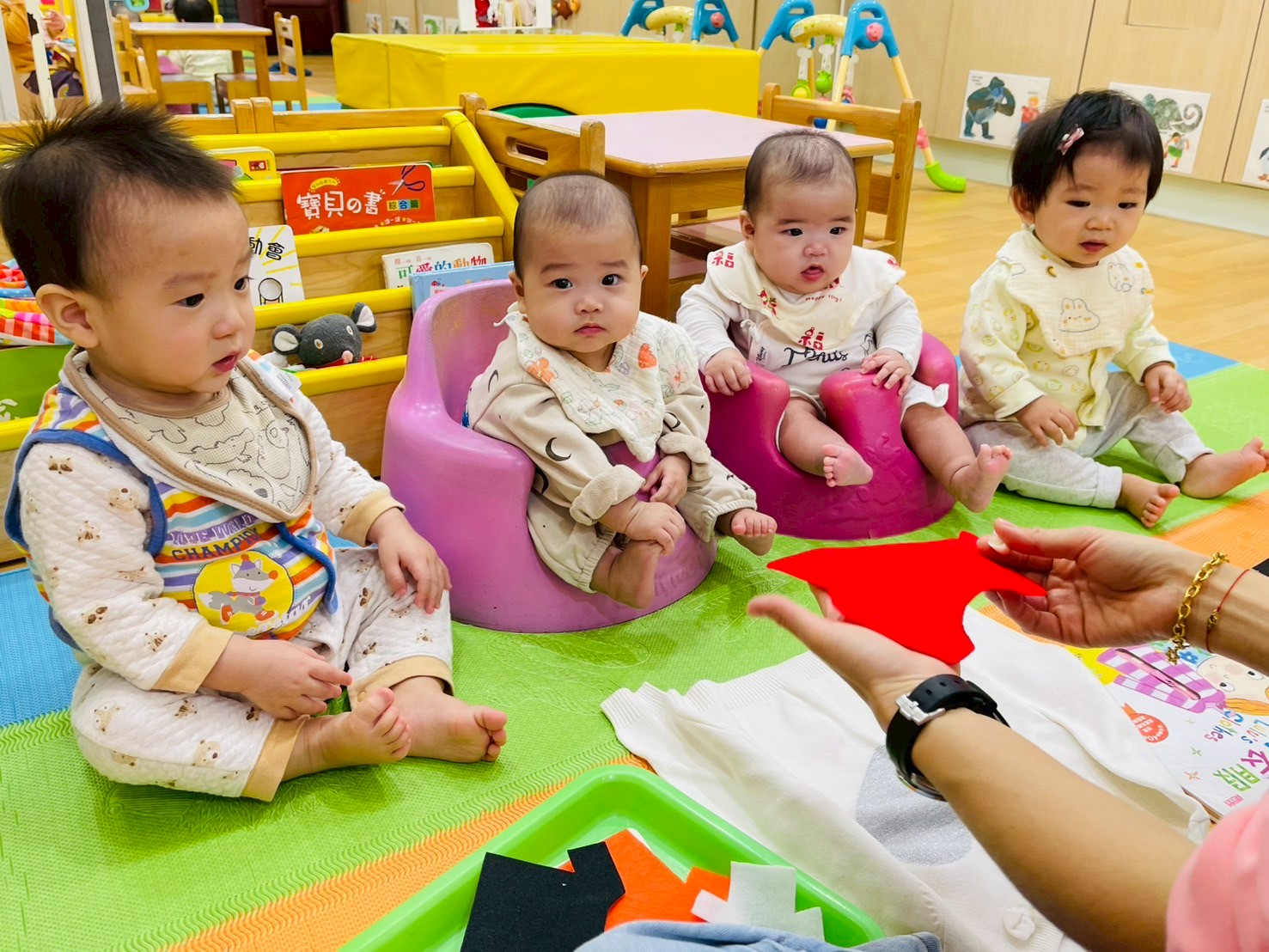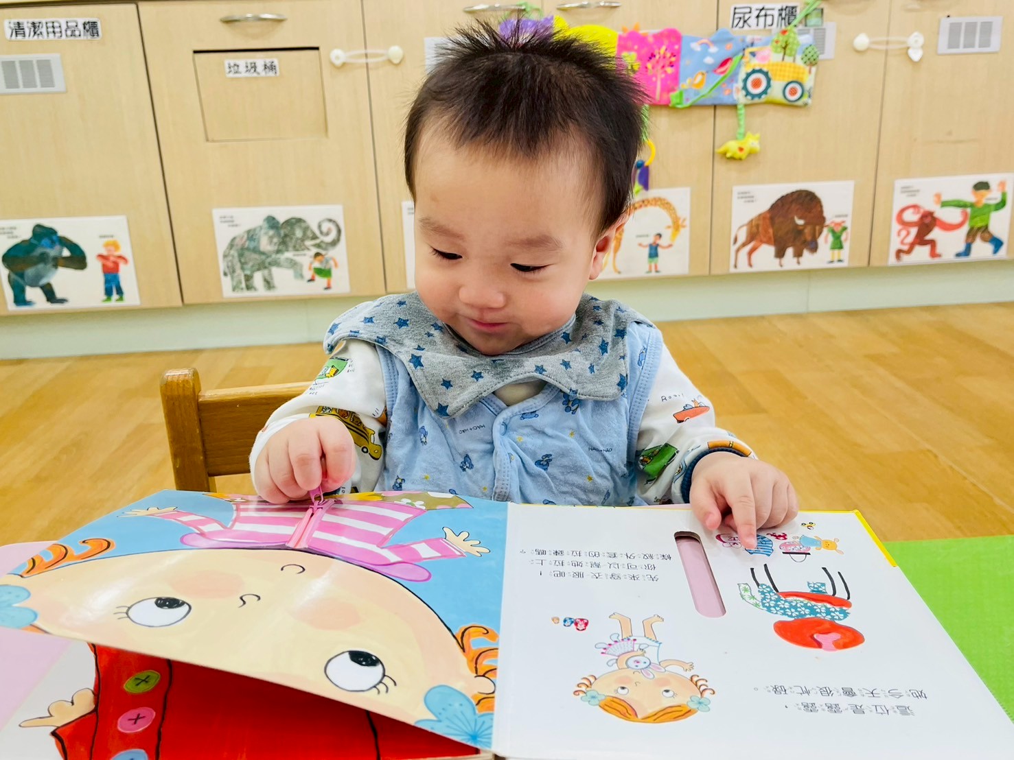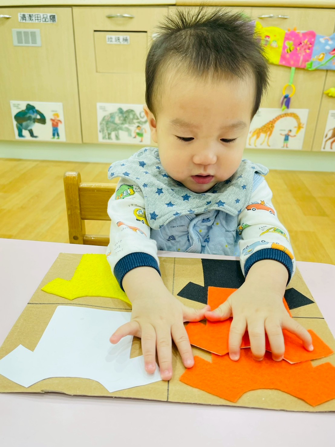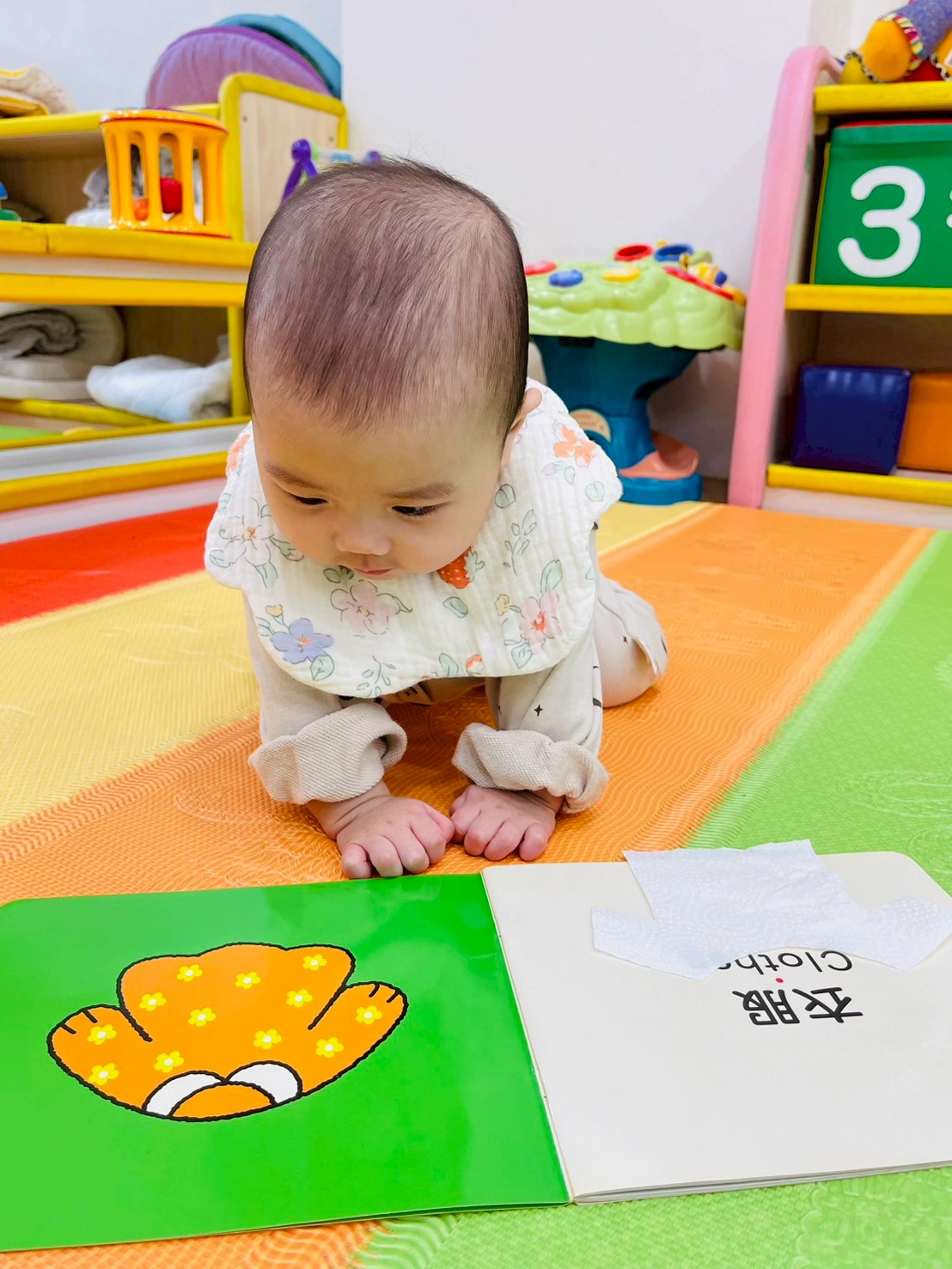 讓寶寶們摸一摸不同材質的衣服,
