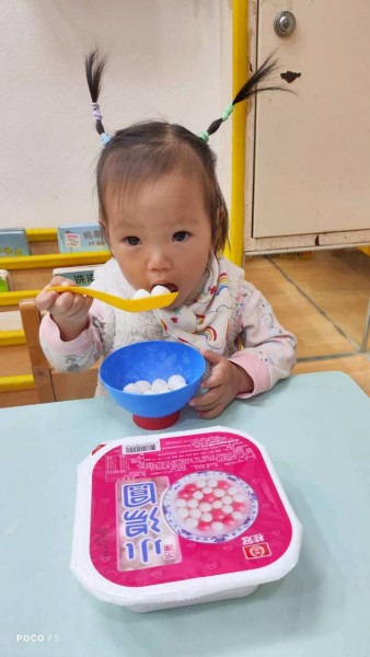 每位孩子很認真撈起湯圓唷!