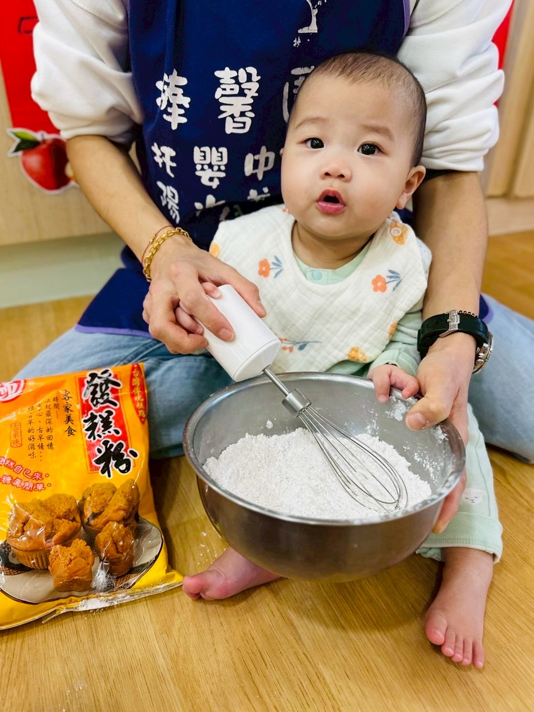 但每個寶寶專注於攪拌麵粉神情十分可愛,