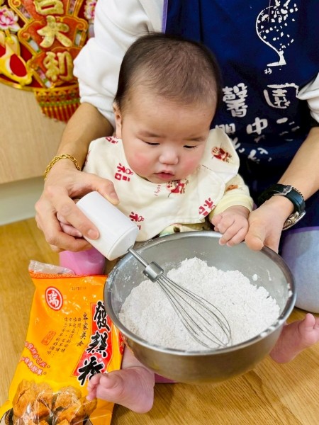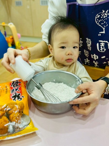 過程中有寶寶迫不及待想直接伸手玩麵粉,