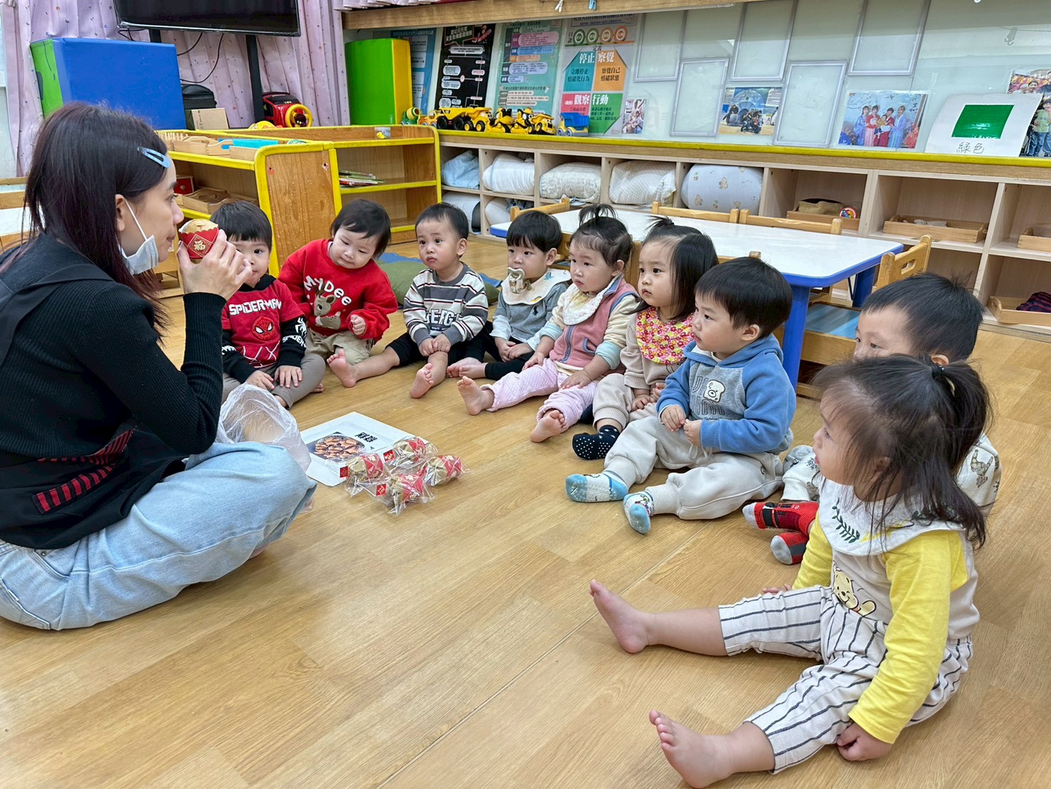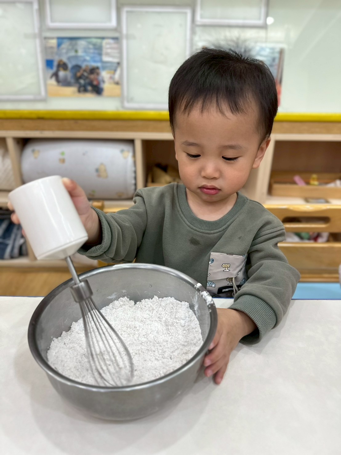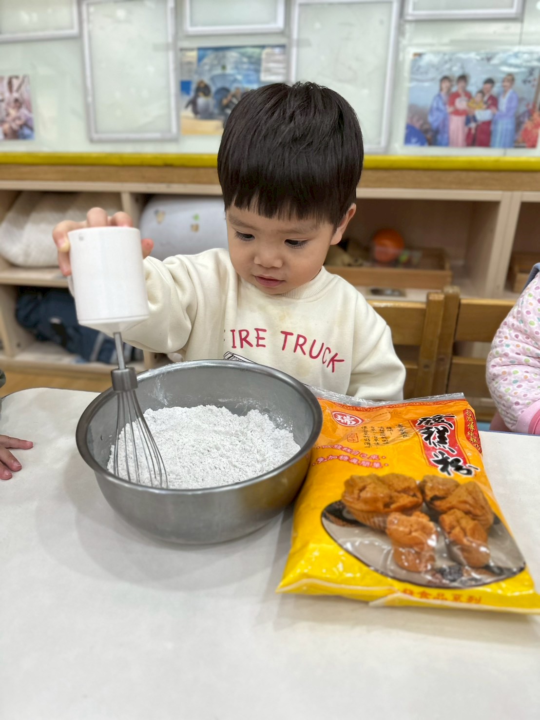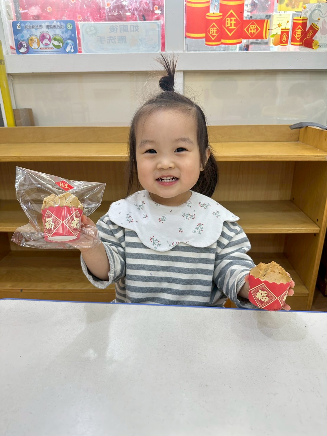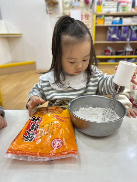 準備迎接過新年啦!!帶寶貝們體驗做發糕的樂趣,動動小手攪拌麵粉,增強手部的小肌肉動作,從中體驗樂趣與認識過年節慶的食物,還可以帶回家和爸爸媽媽一起享用。祝寶貝們:新年快樂~~