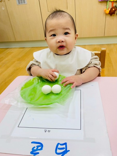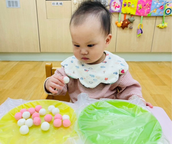 透過觸摸及拿取湯圓練習手眼協調動作,