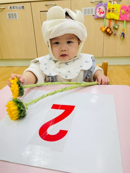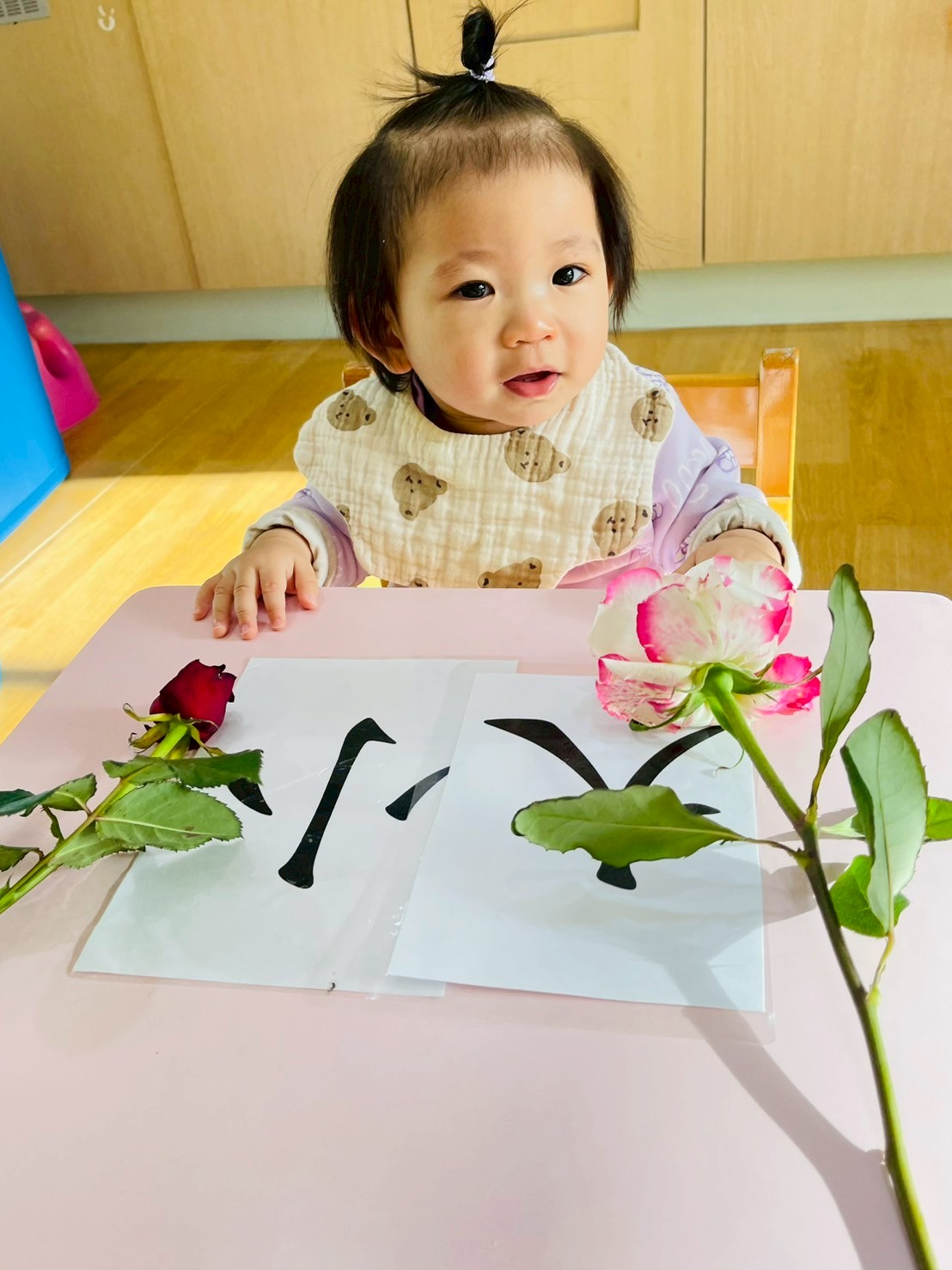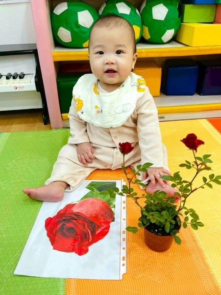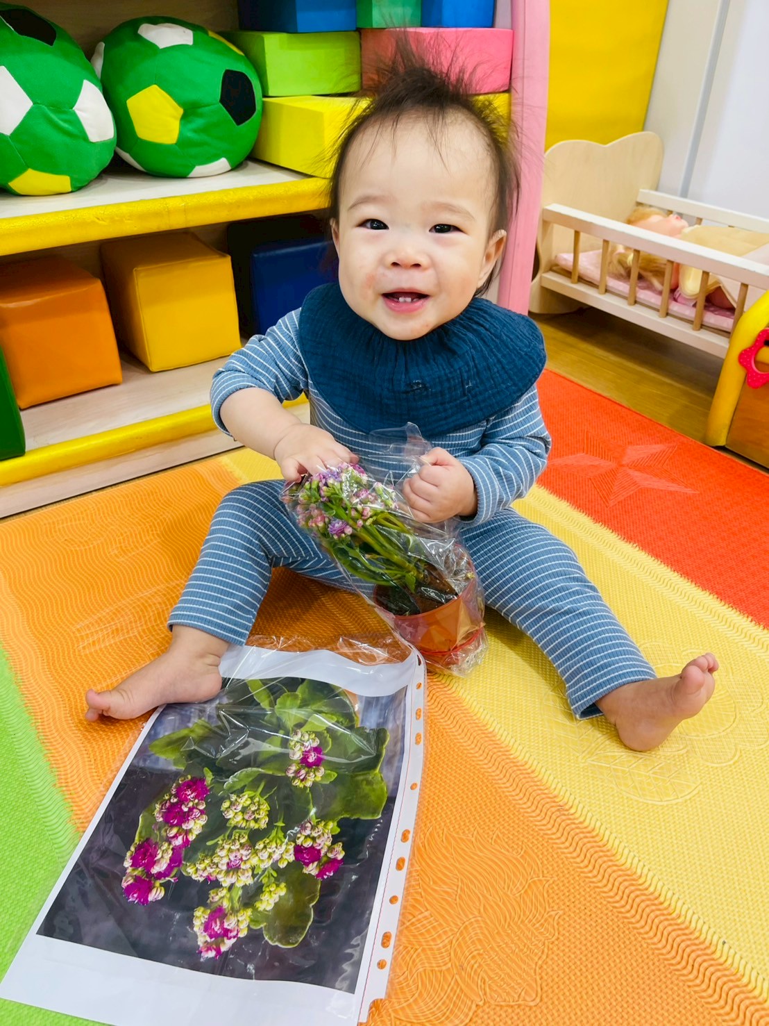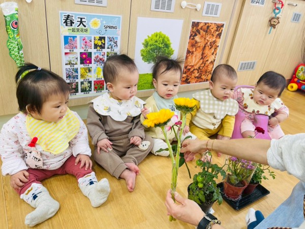 引導寶寶感官探索花的香味、顏色及花朵大小,