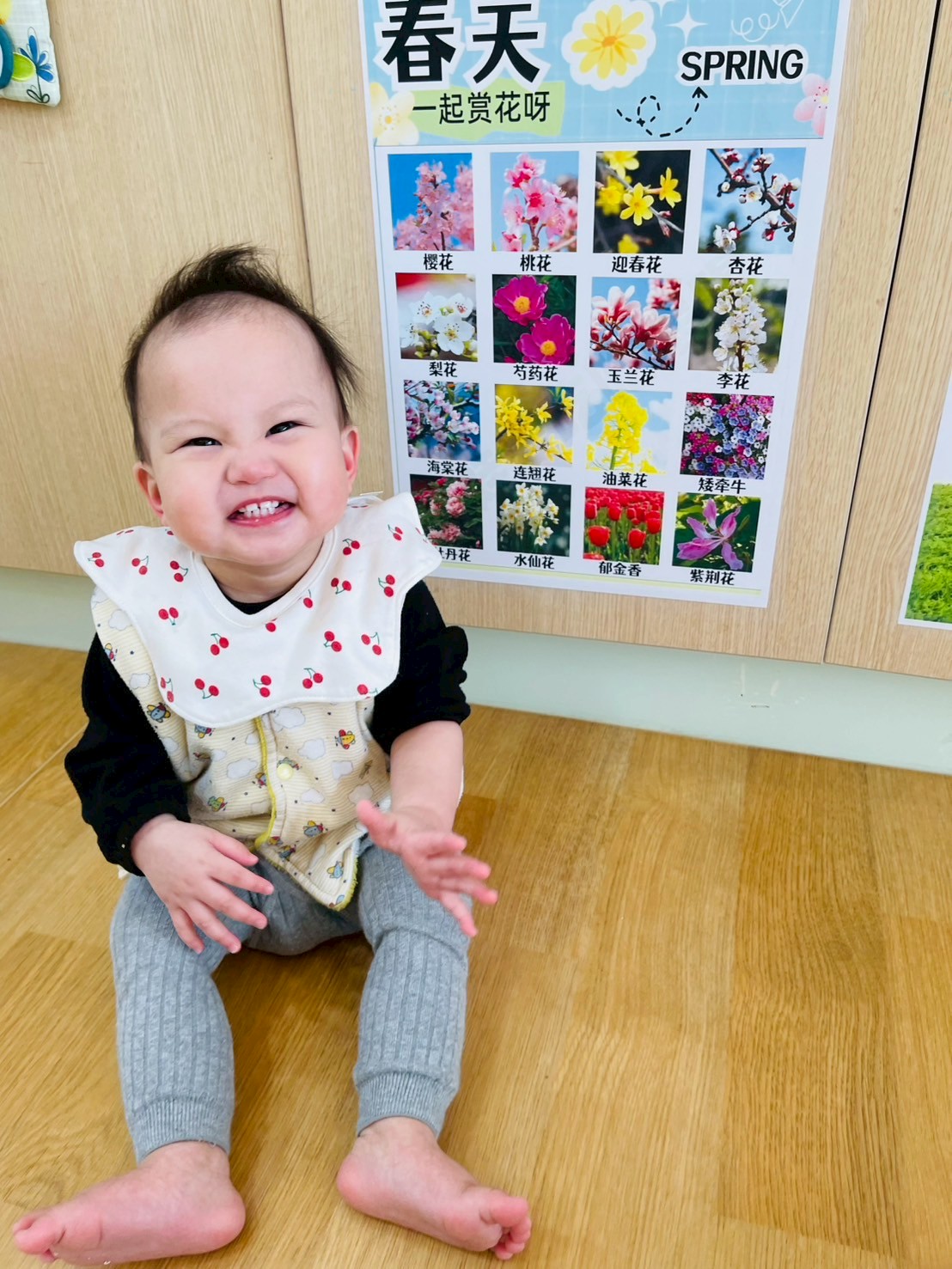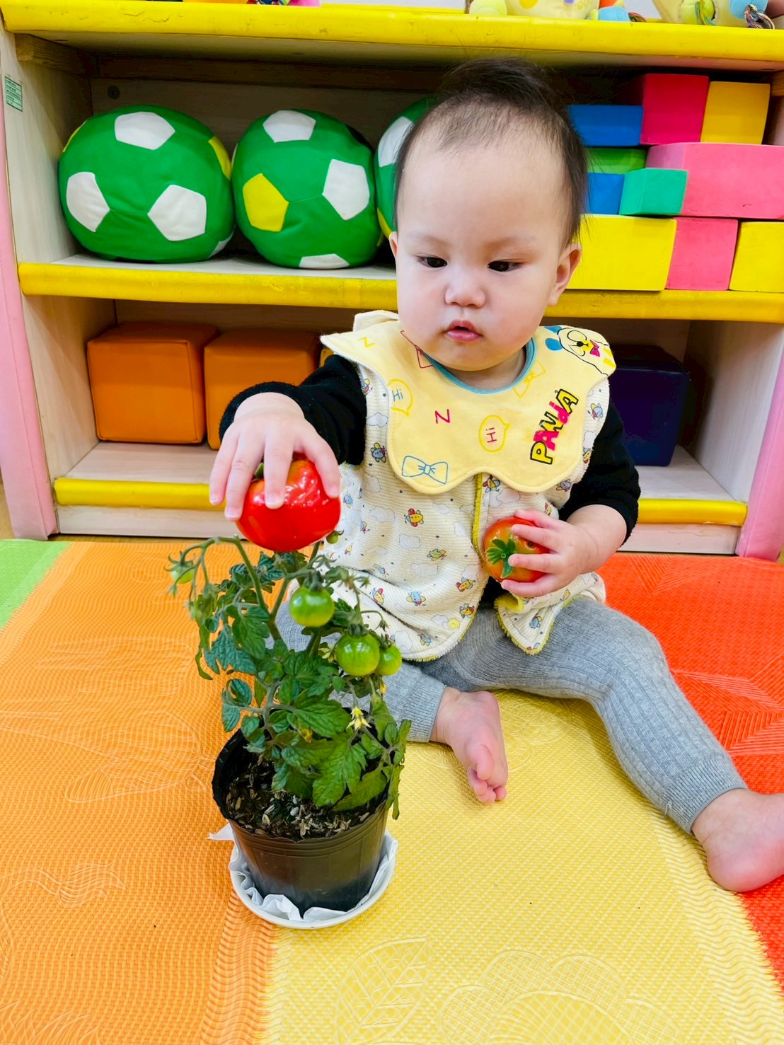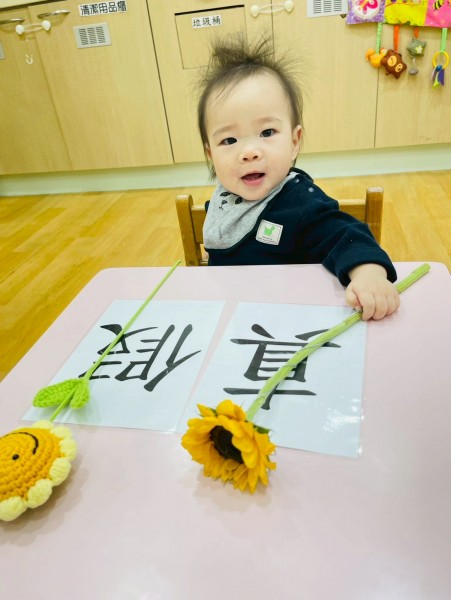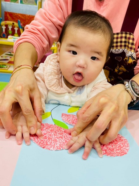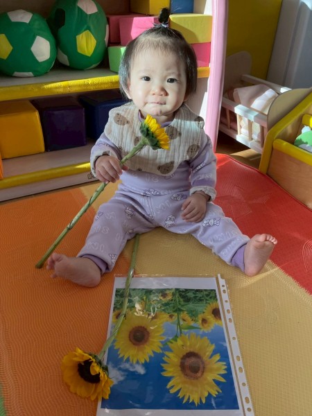 引導寶寶感官探索花的香味、顏色及花朵大小,