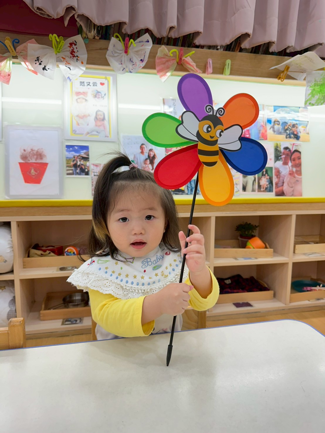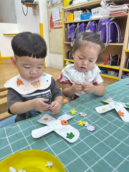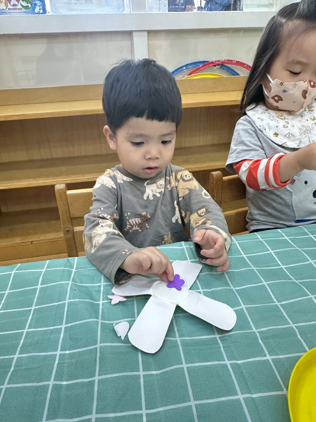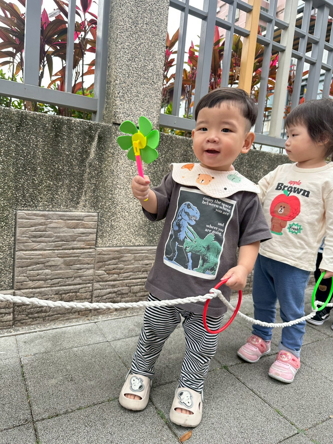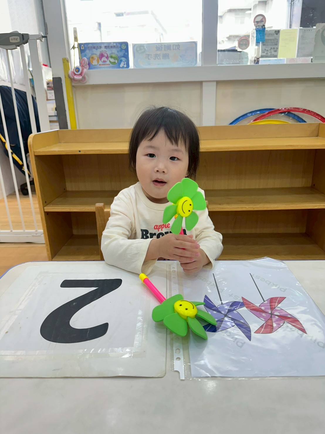 老師準備了各式大小風車,讓寶貝們觀察與遊玩。帶著風車外出散步,在微風中看著風車轉呀轉,孩子們臉上都露出開心笑容。活動中也引導寶貝親手製作風車,貼上喜歡的貼紙,培養創意與手部操作能力,在遊戲中快樂學習與成長。